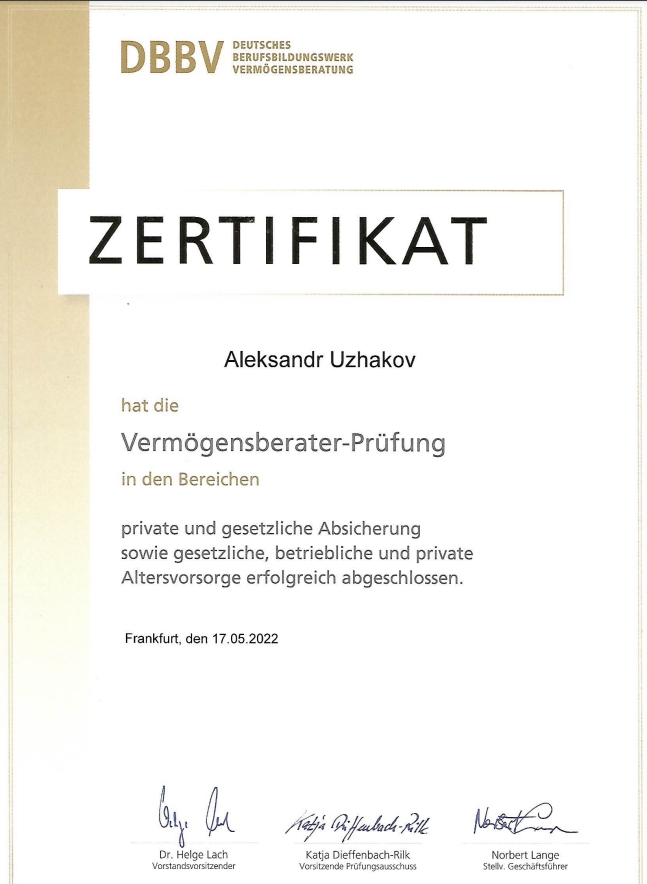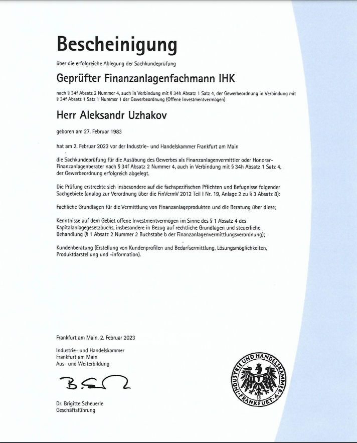 Geprüfter Vermögensberater, Finanzanlagenfachmann (Economist Diplom, § 34d, c, f Abs. 7 GewO)